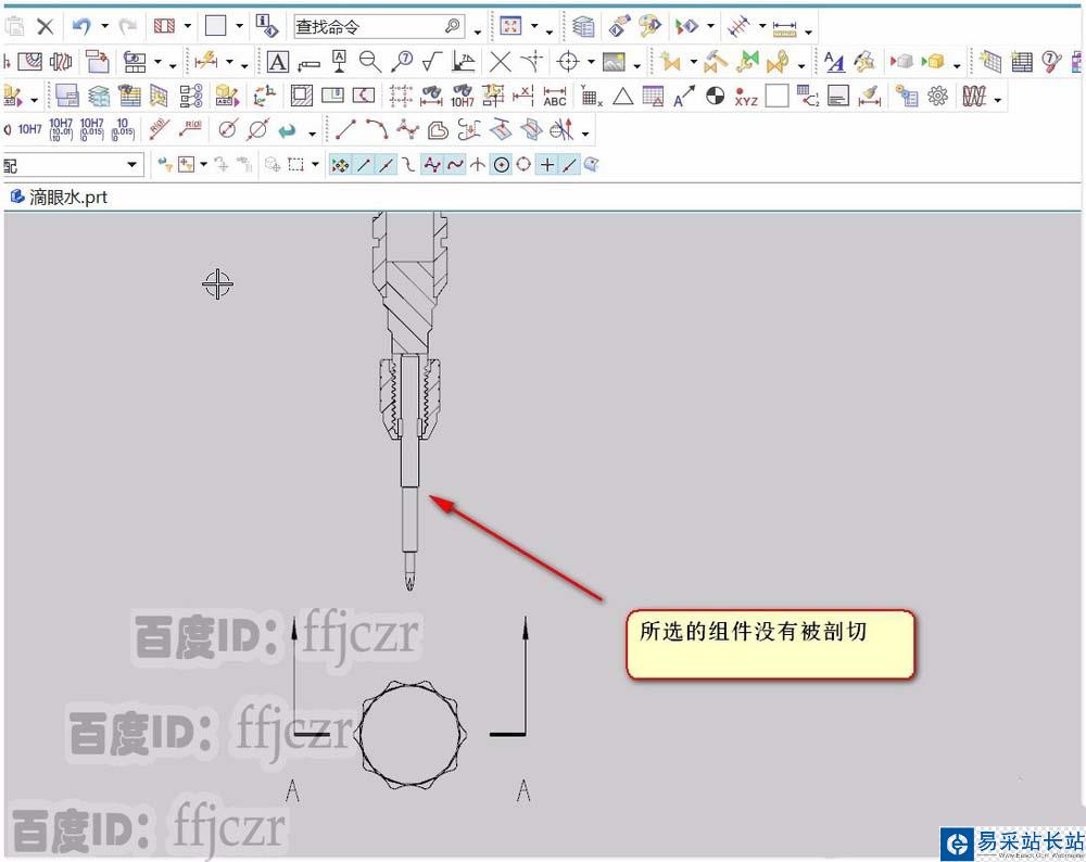 6、選擇完成后,點(diǎn)對(duì)話框中的指定位置,用鼠標(biāo)確定要生成的視圖所在位置即可。從圖中可以看出,選為非剖切對(duì)象的螺絲刀頭沒有被剖切。目的達(dá)到啦!
