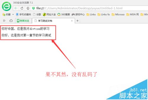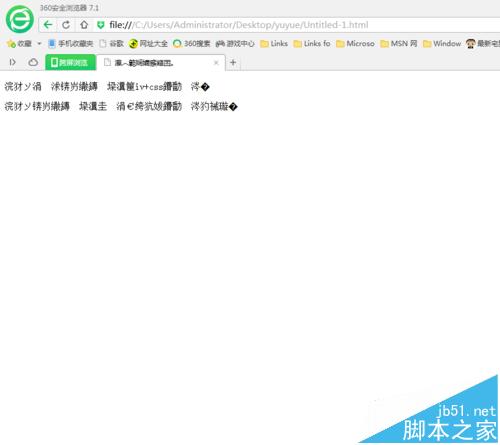 2、然后我用360瀏覽器預覽我的代碼效果,很遺憾,真的出現亂碼了