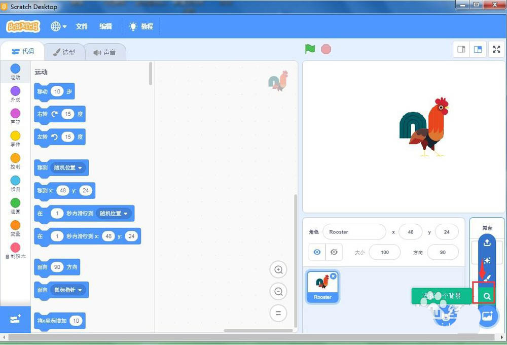 scratch3.0怎么制作森林中的大公雞背景圖?