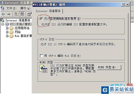 第一步:修改IIS設置,允許直接編輯配置數據庫。先打開,Internet信息服務,如下圖: