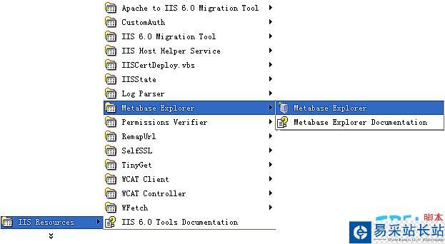 第二步: 依次打開:開始-程序菜單-IIS Resources-Metabase Explorer,運行Metabase Explorer。
