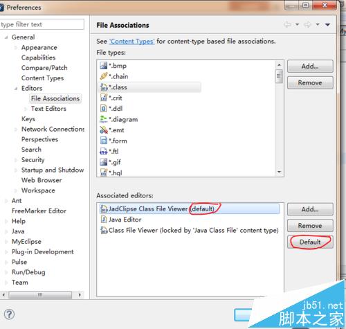 3、但是有時候,即使你按照上述步驟都配置好了,但是仍是不能編譯成功,可能的原因是沒有將jadClipse Class File Viewer設置成default