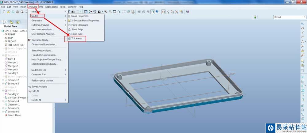 ProE設(shè)計好零件的3D圖之后,需要檢查圖檔是否做的有利于模具實(shí)際加工,在加工之前就需要做產(chǎn)品的肉厚分析,通過分析,可以發(fā)現(xiàn)容易出問題的地方,下面我們就來看看ProE做肉厚分析的教程。