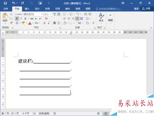 6、回到Word文檔編輯窗口,按下鍵盤的Tab鍵,即可會(huì)出一條直線,按下Enter鍵可進(jìn)行換行。這樣就完成了建議欄的制作。如圖所示;