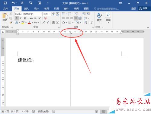 3、建議欄文字內(nèi)容輸入好以后,然后鼠標(biāo)左鍵雙擊上方的標(biāo)尺文字,圖中紅色方框位置。如圖所示;
