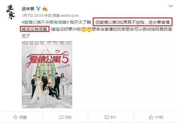 《愛情公寓5》道歉發(fā)文:不甩鍋不找