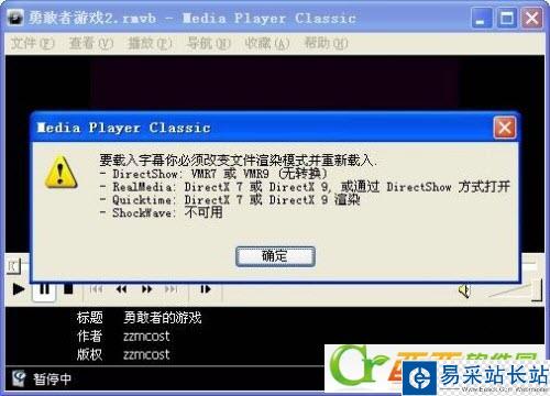 找到字幕文件后用MPC播放下載rmvb文件,接著點擊菜單“文件-載入字幕”,如果這時彈出一個提示窗口,那我們就還需要先設置一下才可以載入字幕(如圖1)。
