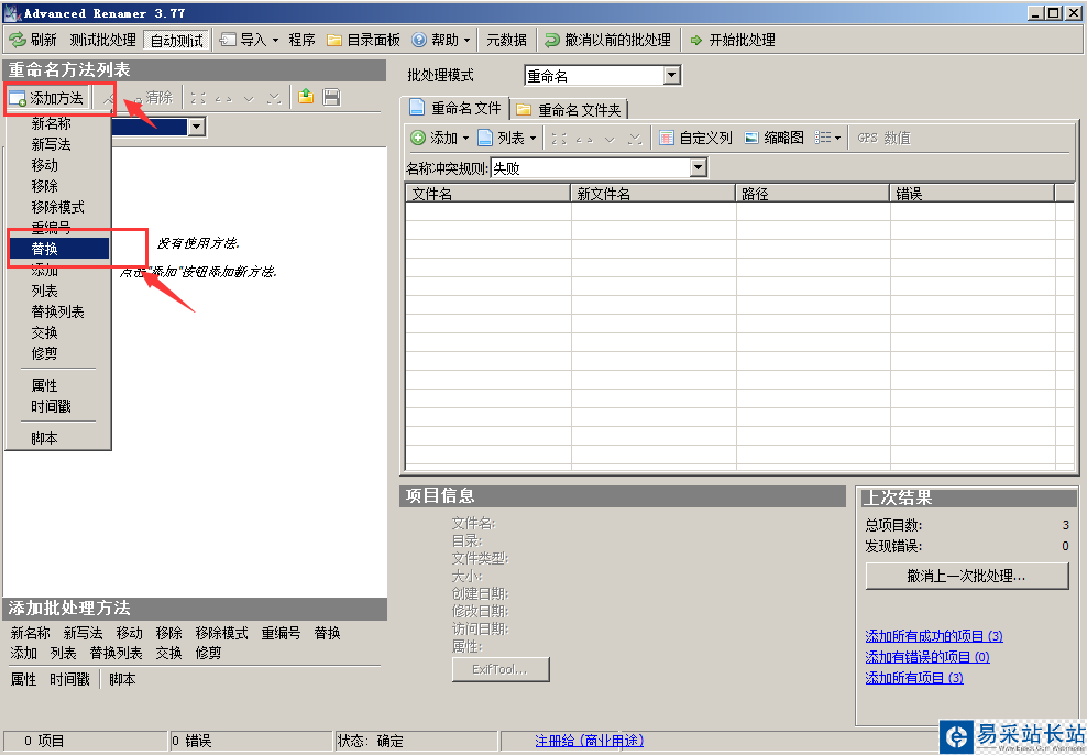 打開運行界面以后,左側的 添加方法 > 然后 替換