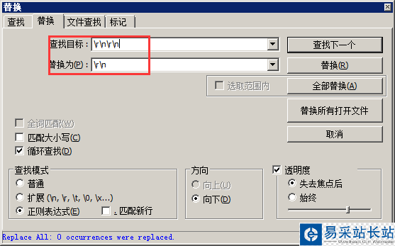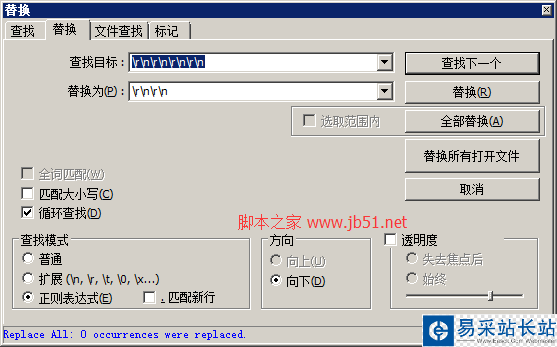 Notepad++使用正則表達式查找,首先需要勾選查找/替換窗口左下部的“正則表達式(E)”