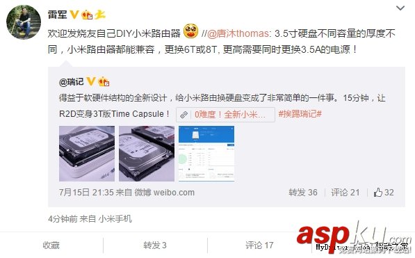 新一代小米路由器換硬盤圖文教程:容量暴增兩倍 ... [更多詳細]
