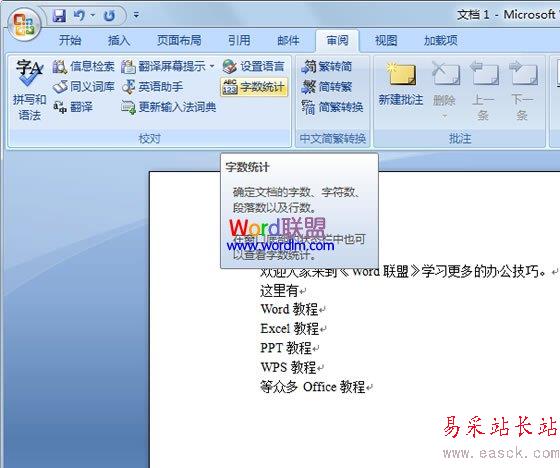 如何利用Word2007字數統計功能統計文檔中所有字符信息 ... [更多詳細]