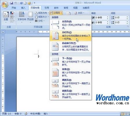 在Word 2007文檔窗口中插入分欄符 ... [更多詳細]
