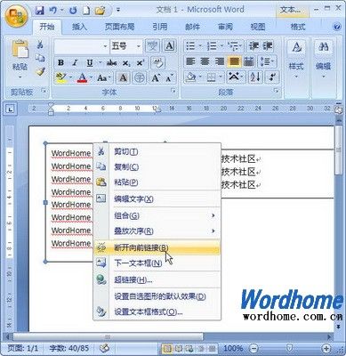 在Word 2007文檔中斷開文本框鏈接 ... [更多詳細]