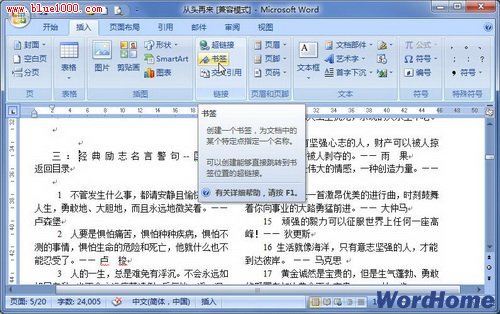 Word2007文檔中的書簽的用法 ... [更多詳細]