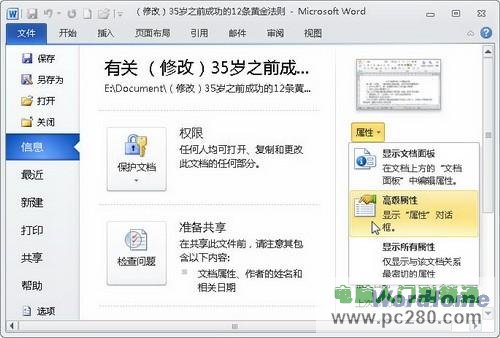 在Word 2010中自定義文檔屬性信息 ... [更多詳細]