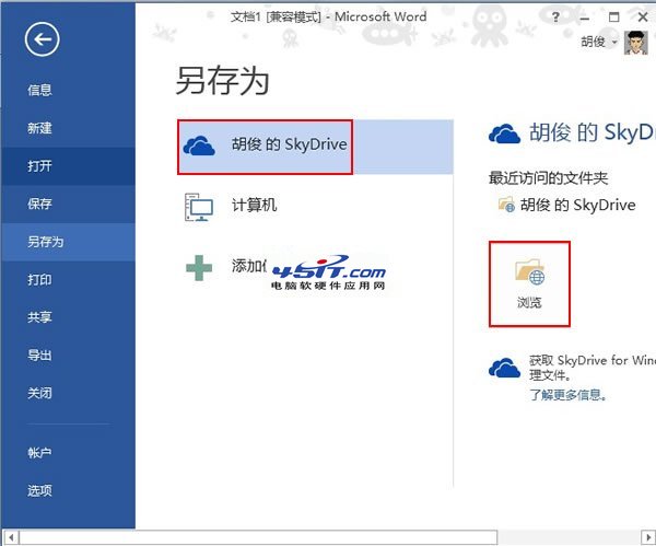 Word 2013中將文檔保存到SkyDrive云網盤 ... [更多詳細]