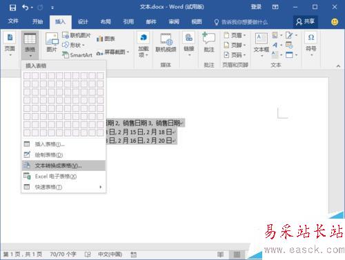 Word2016中的文本怎么快速轉為表格? ... [更多詳細]
