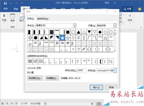 Word2016中怎么輸入實心和空心的五角星圖形? ... [更多詳細]