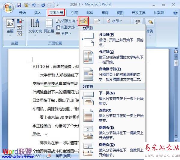 Word2007中如何插入與顯示分隔符 ... [更多詳細]