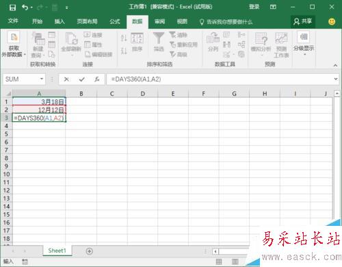 Excel2016中怎么使用DAYS360函數求兩日期之間相差的天數? ... [更多詳細]