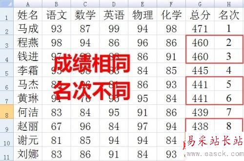 使用Excel做成績表時如何自動實現同分同名次 ... [更多詳細]