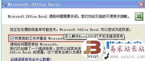 Excel 2003打開發(fā)送錯(cuò)誤報(bào)告怎么辦?解決Excel 2003發(fā)送錯(cuò)誤報(bào)告的 ... [更多詳細(xì)]