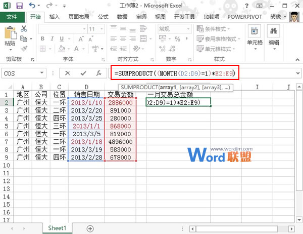 Excel 2013表格中根據銷售日期算出月份交易總金額 ... [更多詳細]