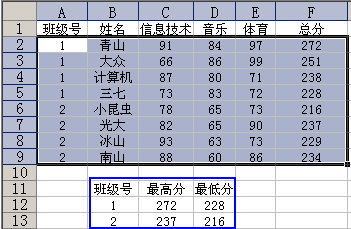 excel根據(jù)班級(jí)號(hào)和總分求最高分、最低分 ... [更多詳細(xì)]