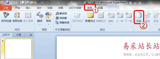 比較并合并兩個 PowerPoint 2010 文檔的圖文步驟 ... [更多詳細]