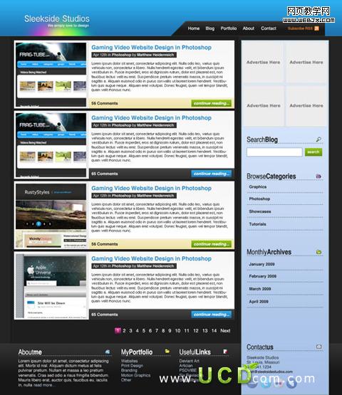 Photoshop設計藍色調專業博客網站首頁模板 ... [更多詳細]
