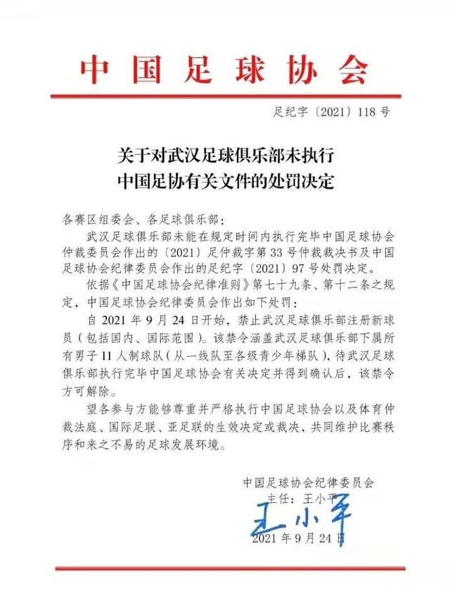 足協:將禁止武漢隊注冊新球員 到底什么情況? ... [更多詳細]
