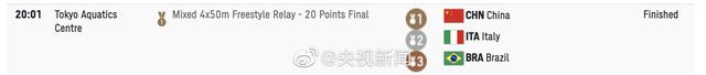 金牌+1!混合4×50米自由泳接力賽中國隊奪冠 ... [更多詳細]