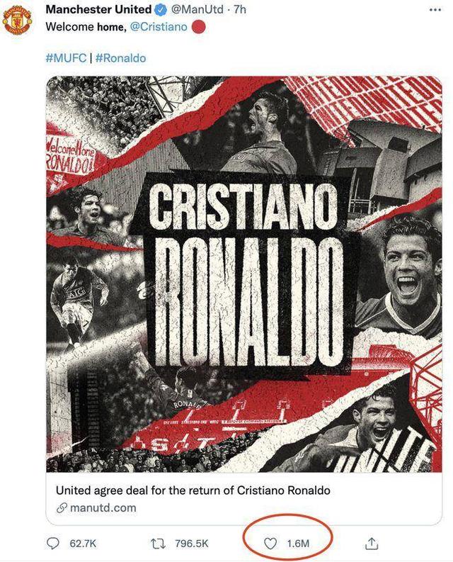 C羅回歸導致曼聯官網癱瘓 C羅的人氣有多旺? ... [更多詳細]