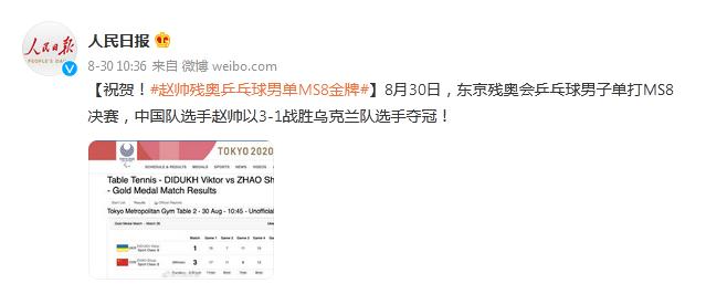 趙帥奪得乒乓球男單MS8級金牌 網友:果然很帥! ... [更多詳細]