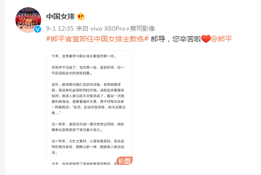郎平宣布卸任中國女排主教練:愿中國排球永葆青春 ... [更多詳細]