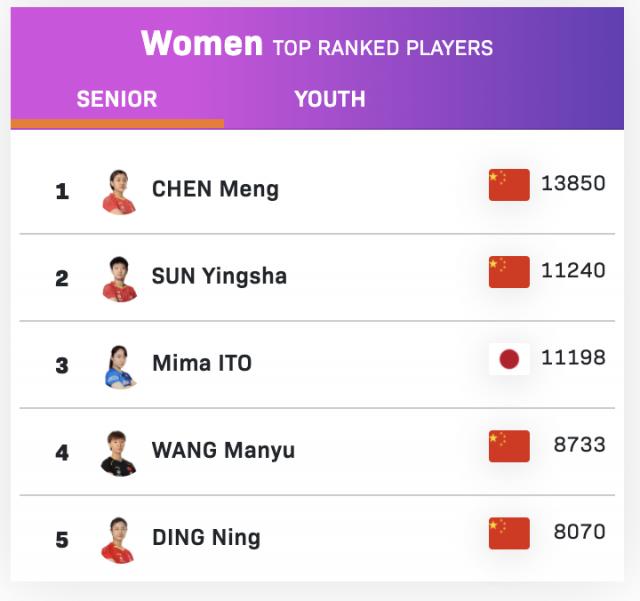 國際乒聯最新排名:孫穎莎反超伊藤美誠 位列女單第二 ... [更多詳細]