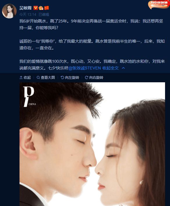 吳敏霞七夕表白老公:我們的愛情就像跳100次水 ... [更多詳細]