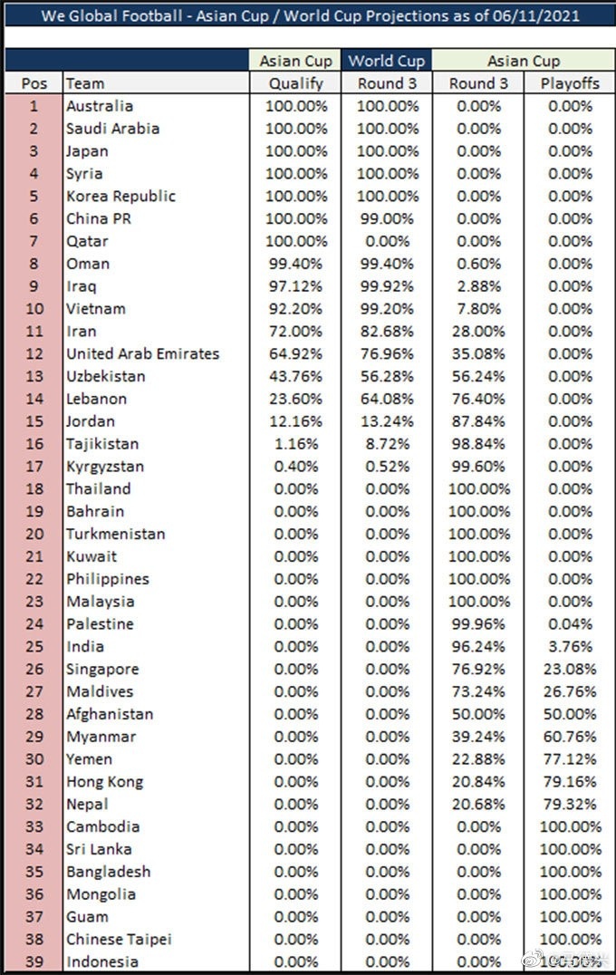 用數學概率算,國足進12強的概率是99% ... [更多詳細]