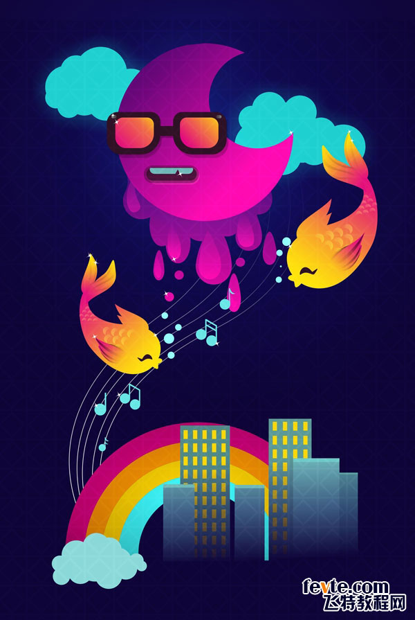 CorelDraw繪制一個超現實主義炫彩卡通海報教程 ... [更多詳細]