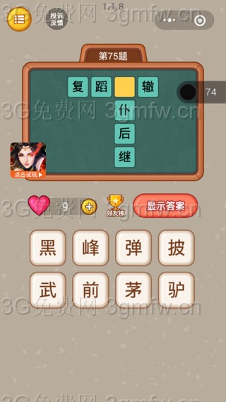 微信全民猜字第75題答案_微信小程序全民猜字答案第75題 ... [更多詳細]