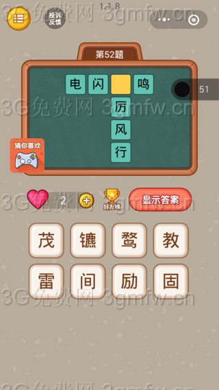 微信全民猜字第52題答案_微信小程序全民猜字答案第52題 ... [更多詳細]
