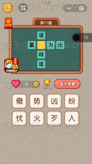 微信全民猜字第71題答案_微信小程序全民猜字答案第71題 ... [更多詳細]