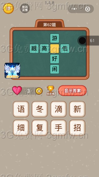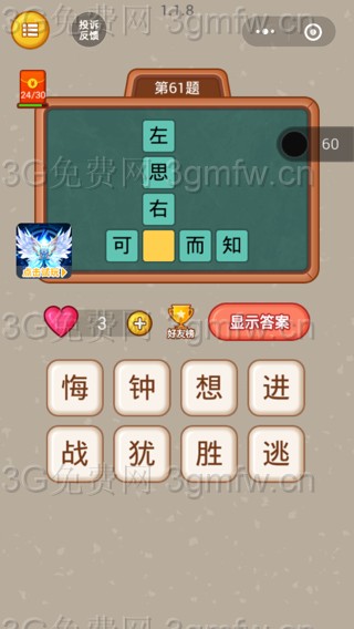 微信全民猜字第61題答案_微信小程序全民猜字答案第61題 ... [更多詳細]