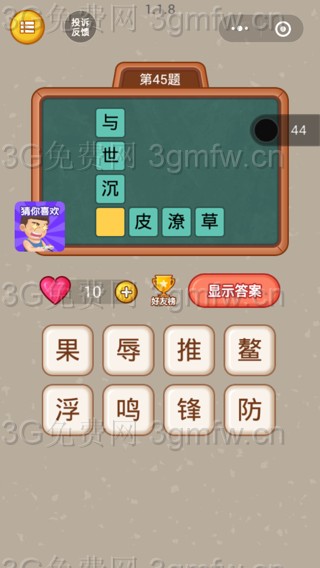 微信全民猜字第45題答案_微信小程序全民猜字答案第45題 ... [更多詳細]