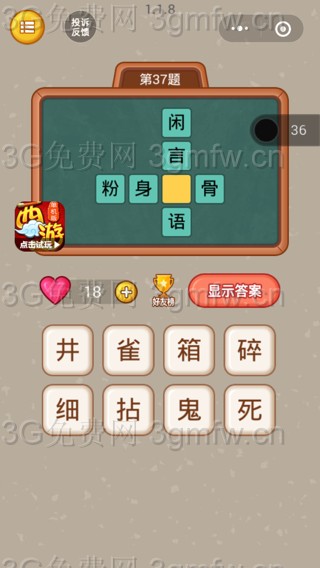 微信全民猜字第37題答案_微信小程序全民猜字答案第37題 ... [更多詳細]
