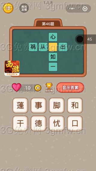 微信全民猜字第46題答案_微信小程序全民猜字答案第46題 ... [更多詳細]