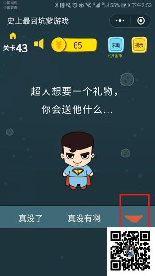 微信史上最坑爹游戲第43關【超人想要一個禮物你會送他什么】答案攻略 ... [更多詳細]
