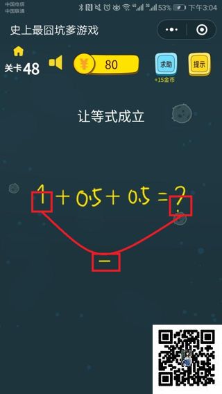 微信史上最坑爹游戲第48關【讓等式成立】答案攻略 ... [更多詳細]