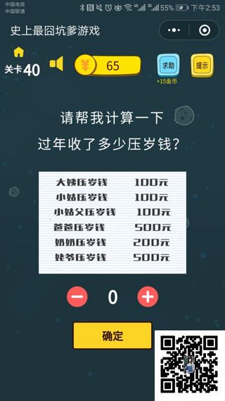 微信史上最坑爹游戲第40關【請幫我計算一下過年收了多少壓歲錢】答案攻略 ... [更多詳細]
