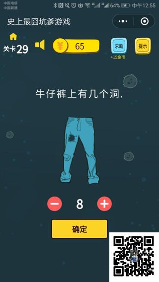 微信史上最坑爹游戲第29關【牛仔褲上有幾個洞】答案攻略 ... [更多詳細]
